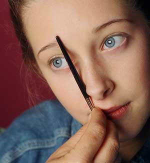 Bushy brows can make eyes look small. Thin or light brows can make eyes look surprised. Over tweezed brows sometime never grow back. Be careful not to shave brows as this can turn into a real mess never looking natural.